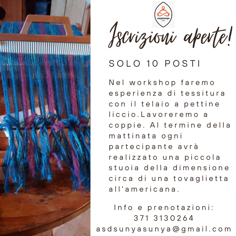laboratorio e incontri pratici dove fare esperienza di tessitura con telaio a pettine liccio
